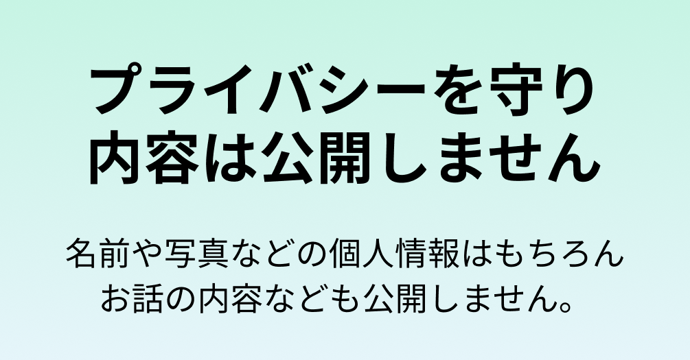 ・お話いただいた内容は社内で参照するために記録しますが、無断で外部に公開することはありません。