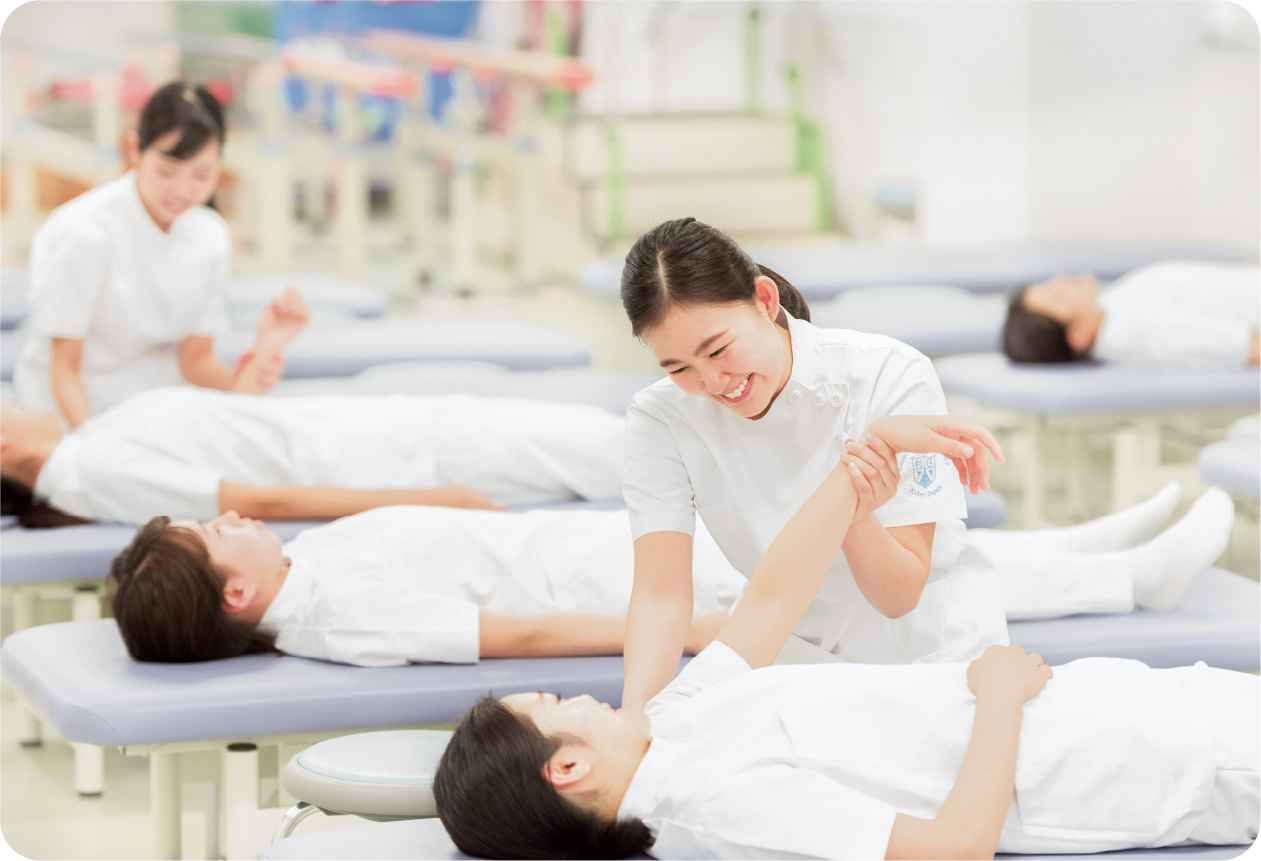 その対象は幅広く、ケガや病気で身体に障害を持つ人、腰痛などの健康問題を抱える妊娠期の女性、パフォーマンス向上のためのトレーニングや治療を行うアスリートなどさまざま。また、例えば「トレーニング」とひとことで言っても、ベッドから起き上がる・立ち上がるといった日常生活の活動訓練から、マッサージなどの物理療法、運動によって筋力の回復や身体機能の向上を目指す運動療法など多岐に渡ります。働く場所は病院や福祉施設などに加えて、学校の運動部でサポートをしていることもあり、意外に身近な仕事でもあります。