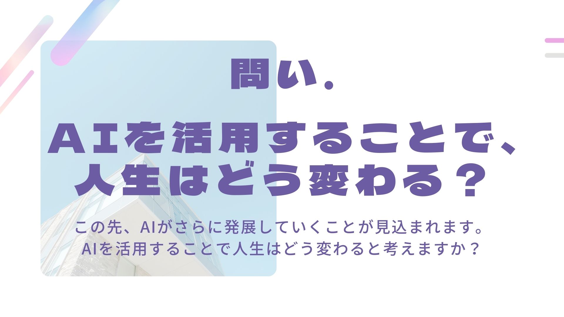 問い.AIを活用することで、人生はどう変わる?