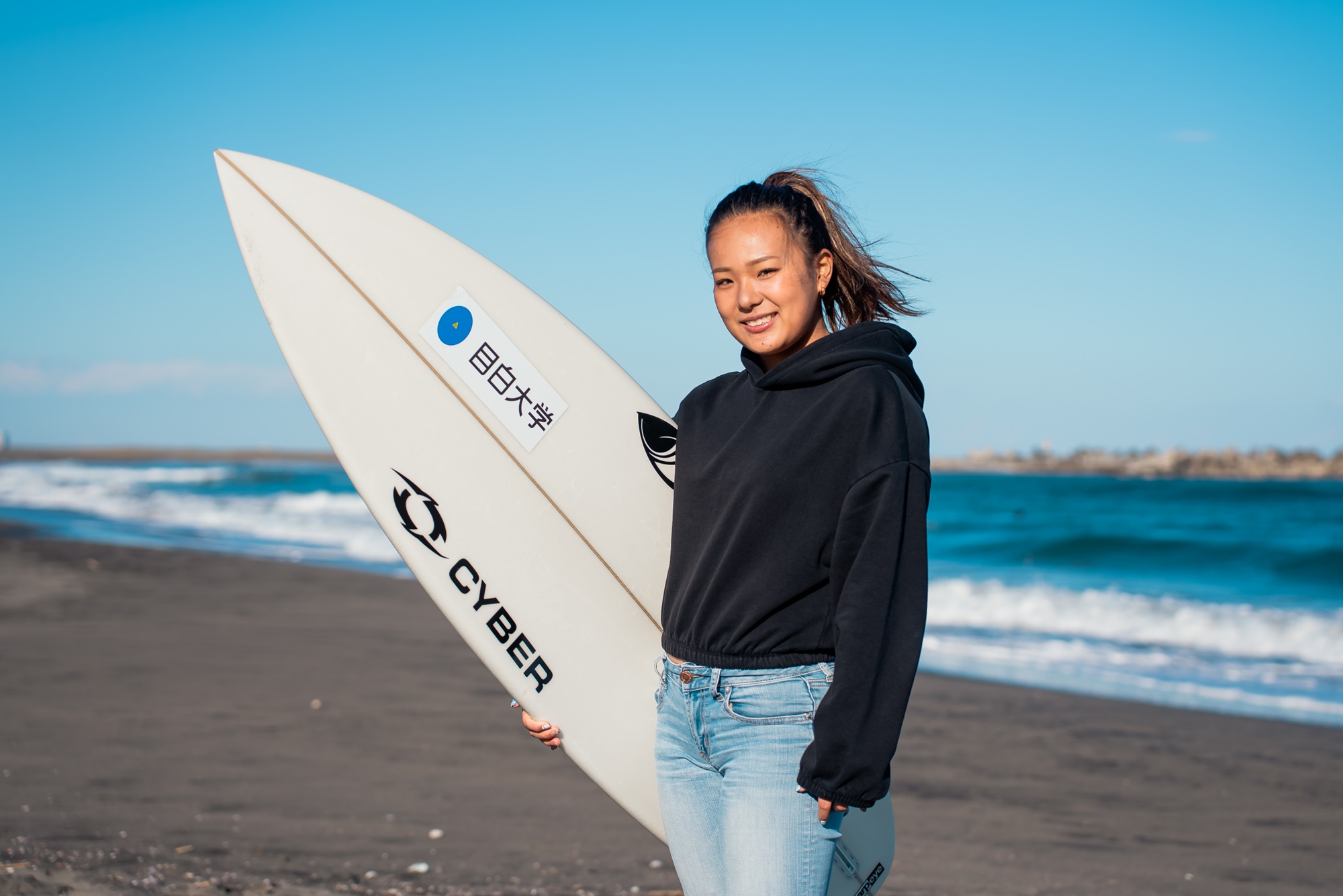 そこで今回は、目白大学心理学部心理カウンセリング学科1年生の能恋菜(のう ここな)さんにインタビューを実施!能さんは小学生の頃に始めたサーフィンを現在まで続けており、プロを目指すほどの実力者。大学で心理学を学びながら、全国大会などに出場しています。