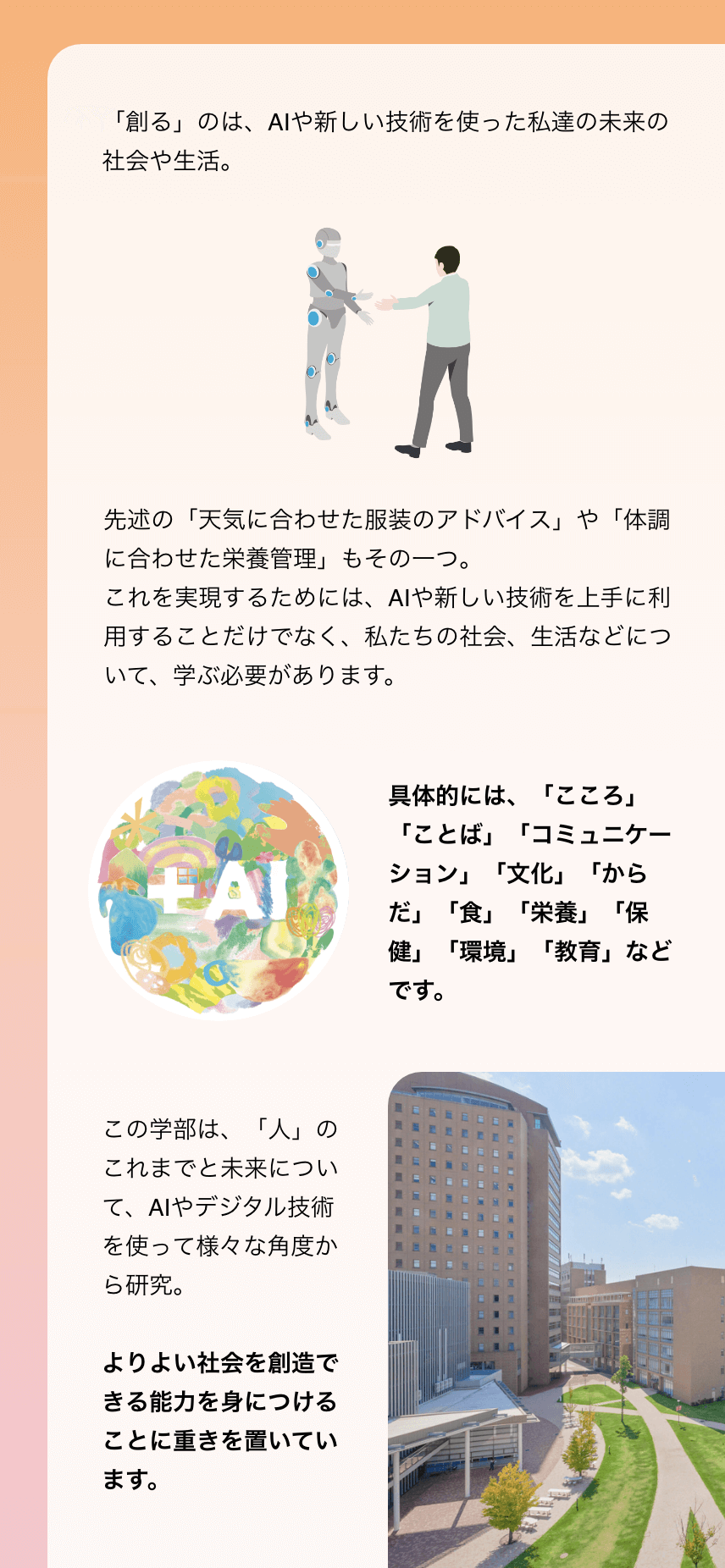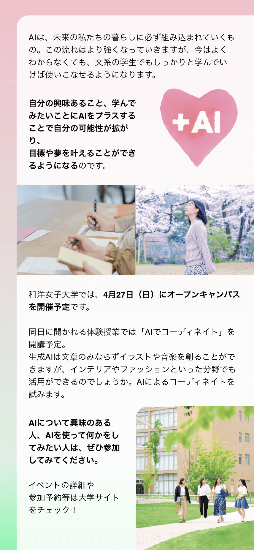 AIは難しくない? 文系の人も、AIを使って興味ある分野を深めよう!2025/04/02PR文系AIAIライフデザイン学部和洋女子大学ツイートオープンキャンパスの詳細はこちらから AIライフデザイン学部(仮称・設置構想中)