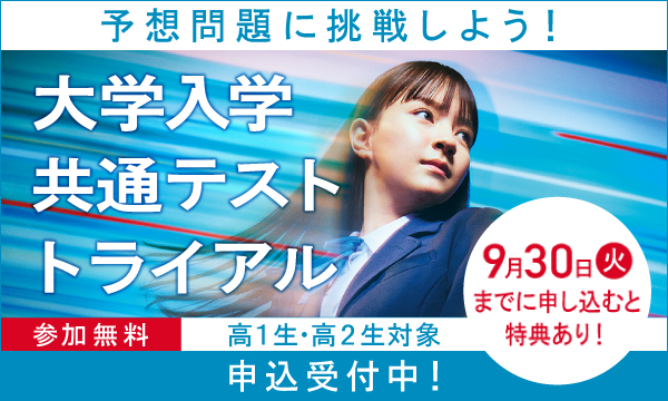 ご紹介した河合塾グループでは、共通テストの形式を踏襲しつつ、高校1年生でもチャレンジできるように作成された「大学入学共通テスト トライアル」が実施されます。
