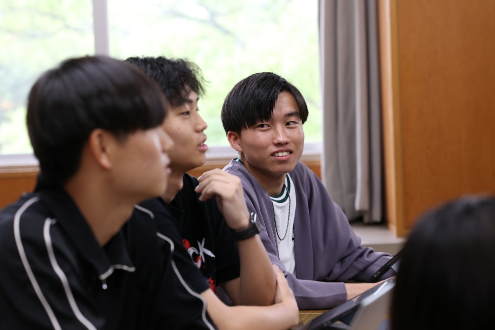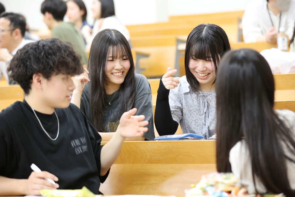 高校の授業と比較すると、大学はグループワークが多く、授業の取り組み方が高校と違うと感じています。一般教養の授業では他学部の人とも仲良くなれますし、授業での交流を通して仲良くなれるので、他学部にも人脈が広がっていると感じます。