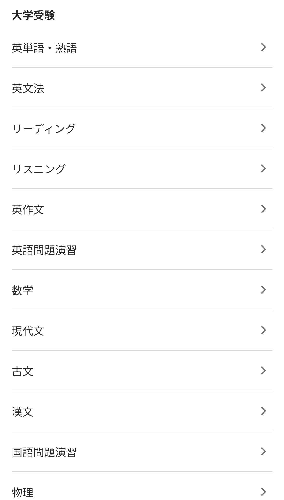 カテゴリランキングでは各カテゴリで人気の教材を確認することが出来ます。大きく、「大学受験」・「TOEIC」・「資格試験」・「その他」に分かれており、また、その分類から細かく分かれています。