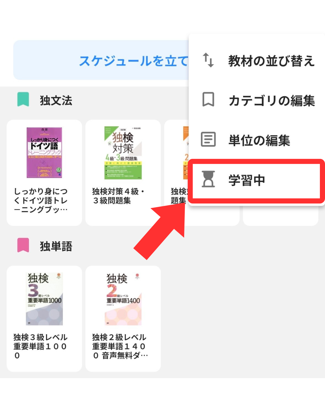 本棚に教材を登録したら、使いやすいように設定してみましょう。ここでは、整理の機能のうち、教材のステータス設定をご紹介します。