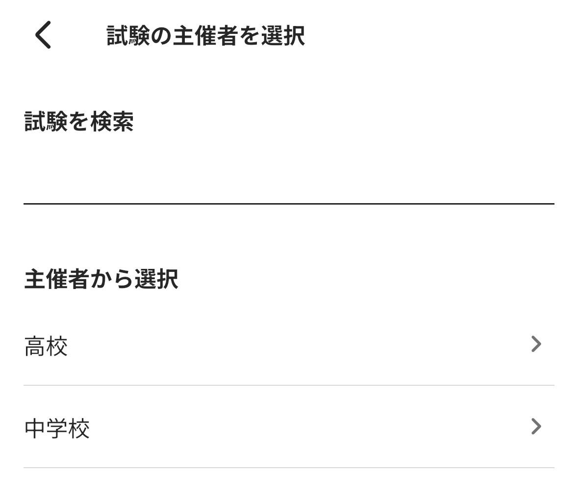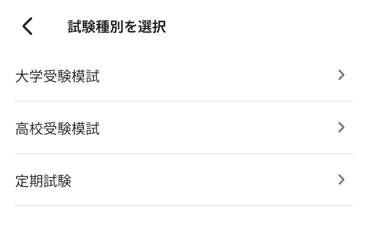 登録する試験は、「大学受験模試」「高校受験模試」「定期試験」から選ぶことができます。