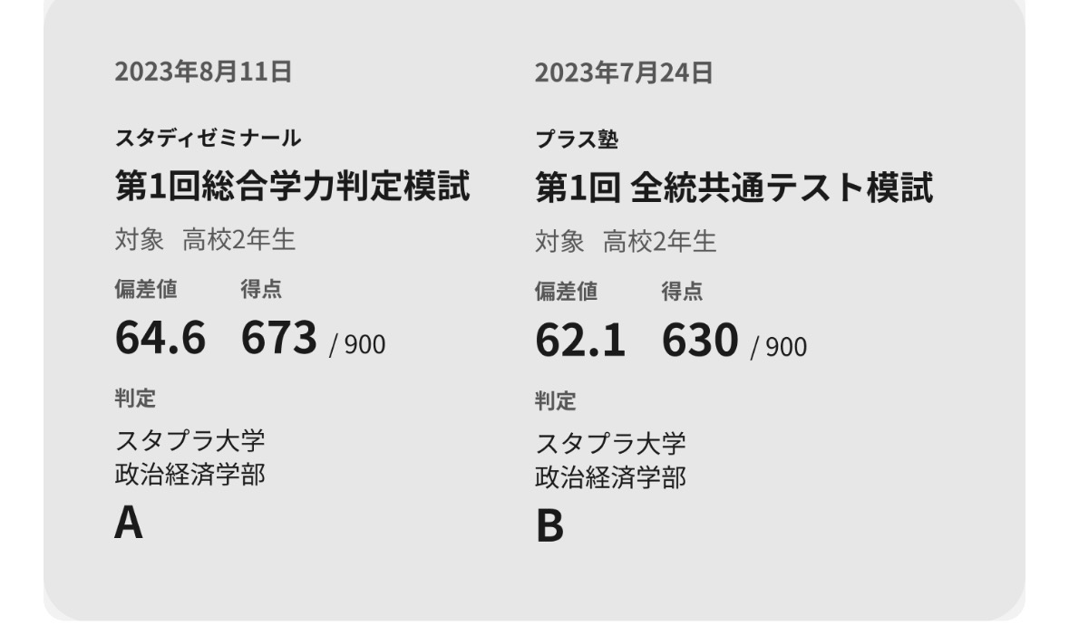 Studyplusには、定期テストや模試の成績を入力することもできます。