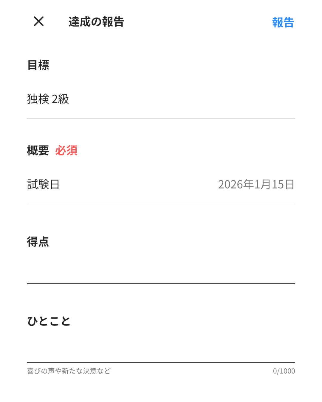 ひとことには、喜びの声や新たな決意を記録してみましょう!