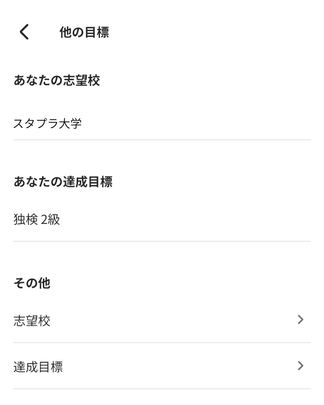 既に設定している志望校・達成目標が画面の上部に表示されるので、設定してあれば簡単に記録することができます。