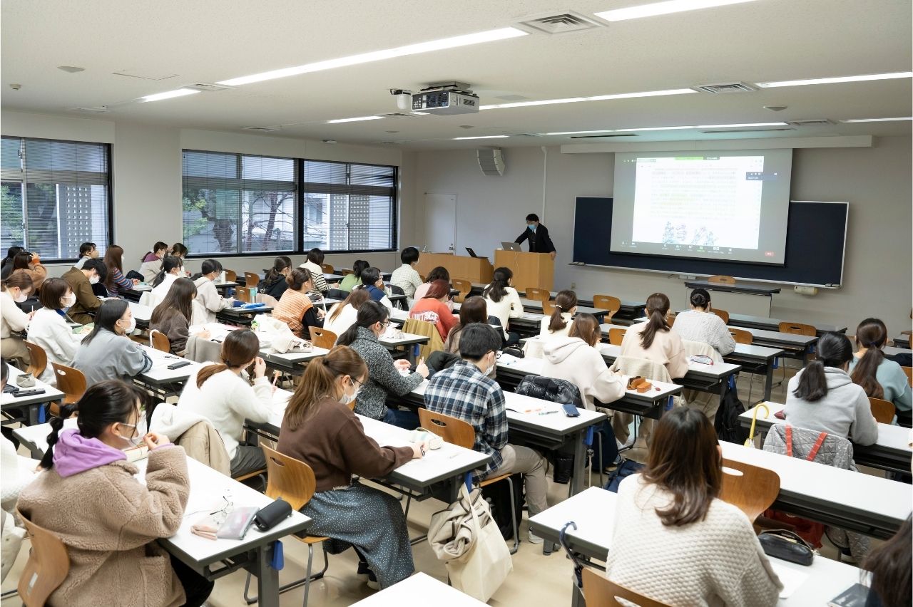 低学年次には本学OBによる「職種理解セミナー」が開催され、また、「薬学人のキャリアデザイン」という講義があるなど、早期から将来について考える機会が設けられています。また、各業界から採用担当者を招く学内企業研究会や、丁寧な個別面接対策など、一人ひとりの夢に伴走する環境が整っています。