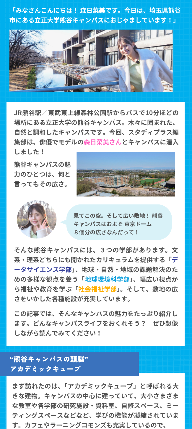 充実しすぎ!! 立正大学熊谷キャンパスの魅力にせまる2026/04/03PR立正大学熊谷キャンパスキャンパスレポートツイート立正大学 入試情報サイトレポートの様子は動画でも公開中です。ぜひこちらもチェックしてみてください!