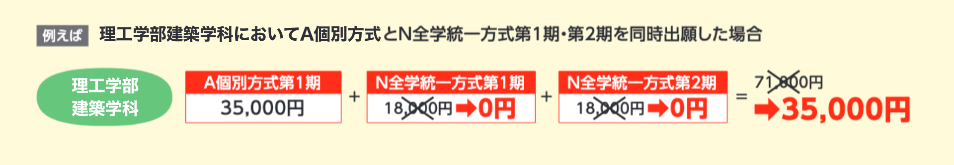 さらにA個別方式※とN全学統一方式において、同一学部・同一学科(コース)を同時出願した場合、N全学統一方式第1期も、第2期も入学検定料が「0円」になります!