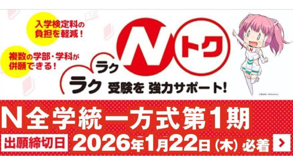 首都圏の大学の一般選抜が本格化するのは2月10日前後です。2月1日に実施するN全学統一方式第1期なら、受験の機会も増えて、併願計画が立てやすくなります。
